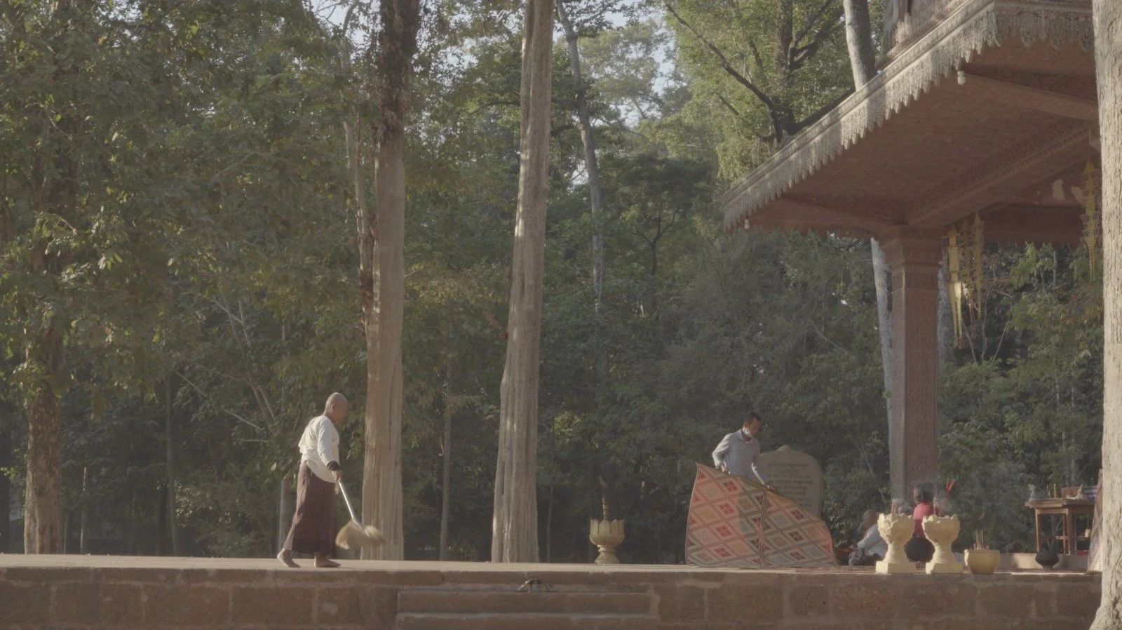 The film is a collage of footages, collected by Elisa during her travels, ranging from serene Buddhist monasteries in Vietnam and Thailand, forms a tapestry of diverse landscapes. This dynamic interplay creates a dialogue, oscillating between concrete and abstract visuals.